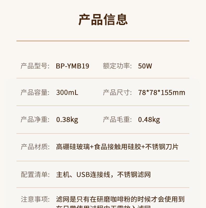 配置清单:主机、USB连接线,不锈钢滤网