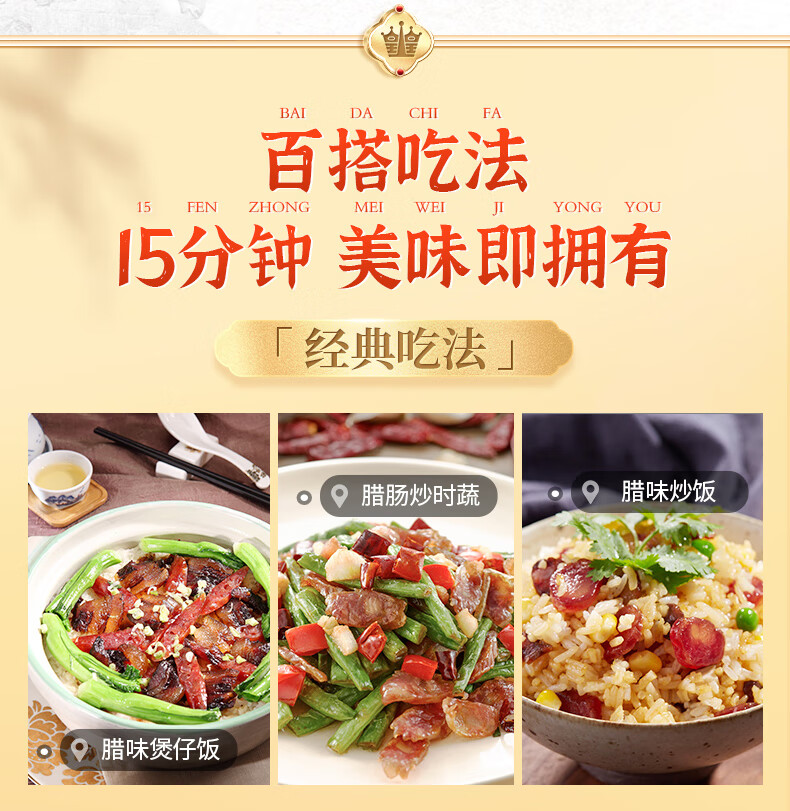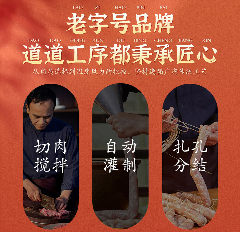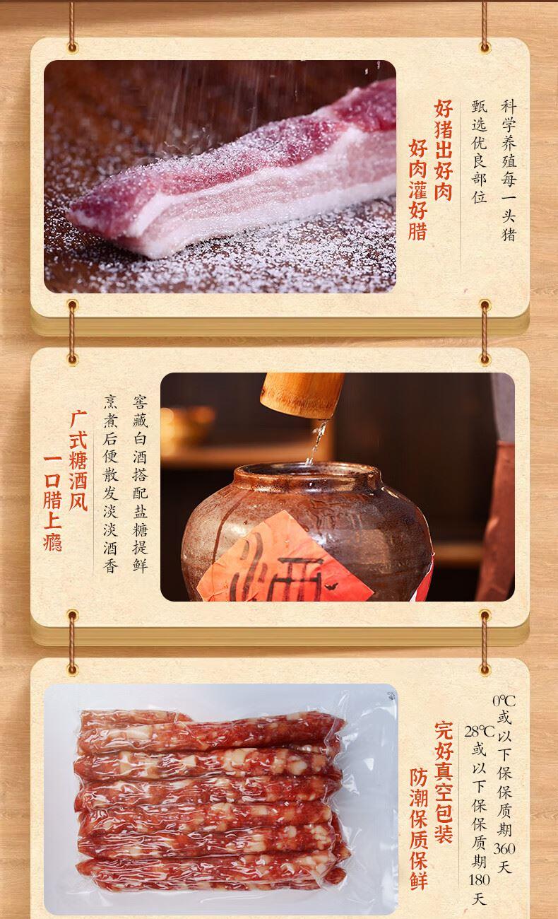 商品编号:100176064207 口味:广味 特产品类;广式腊肠 包装形式;袋装 食用方法;加热即食 加工工艺;烘干 保质期;180天 总净含量;454g