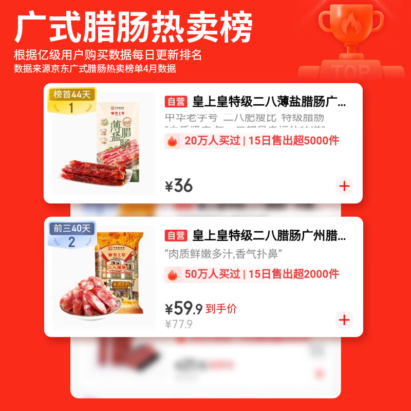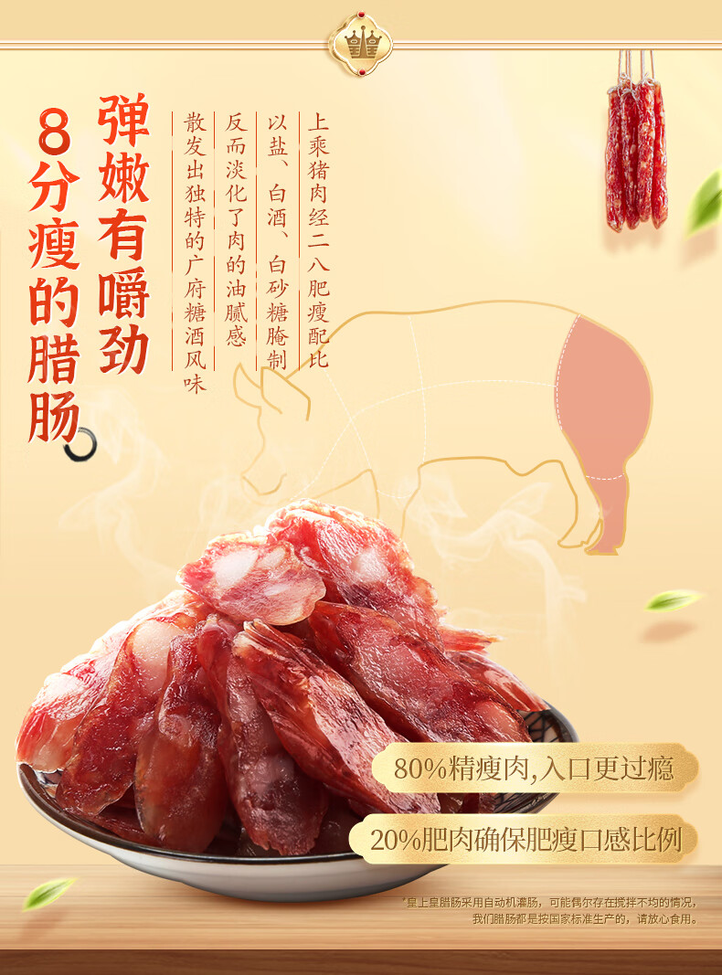 皇上皇特级二八腊肠广味广东甜肠广式香肠454g