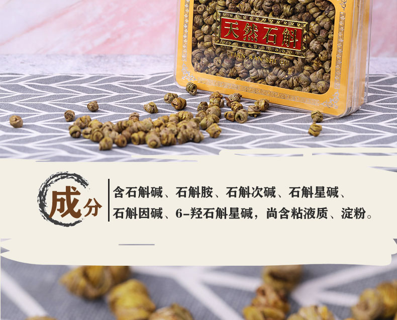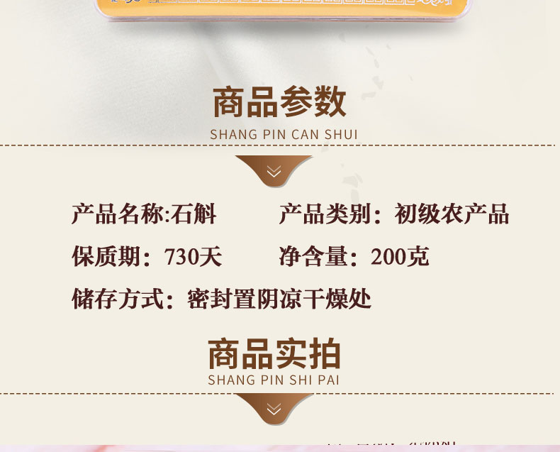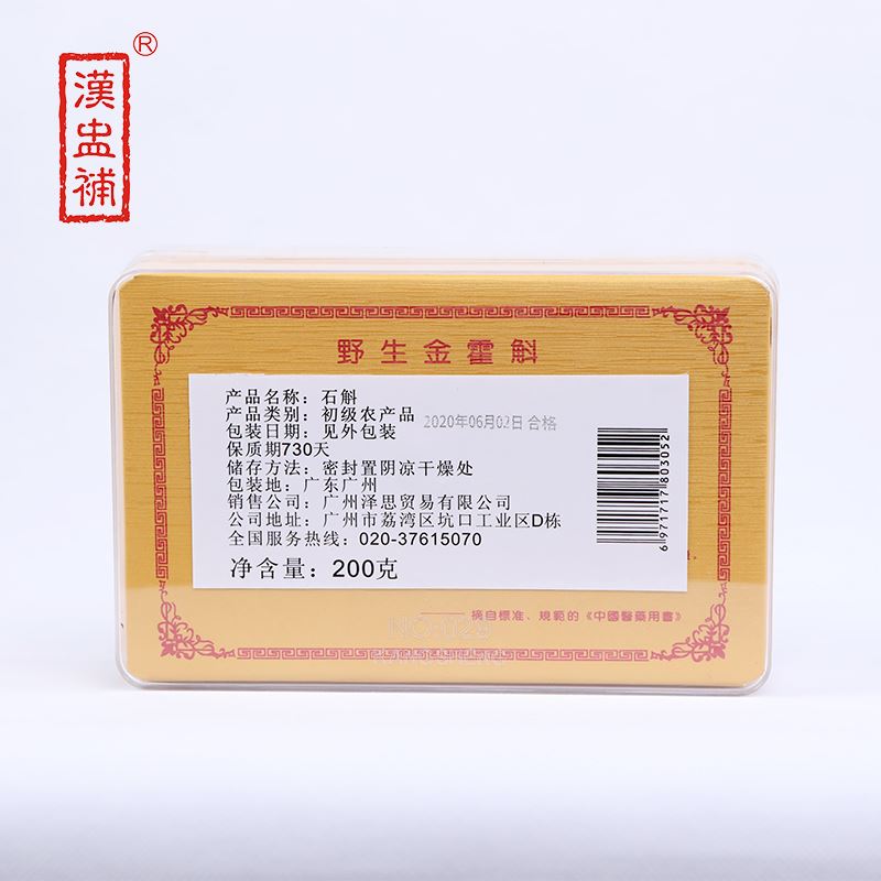 产品名称:汉盅补精选紫皮石斛200克盒装 净重:200g 规格:盒装