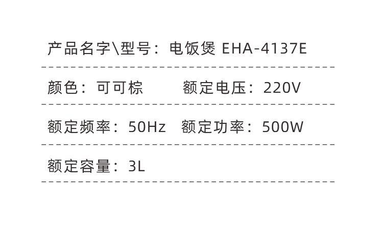 品牌:膳魔师THERMOS 型号:EHA-4137E 额定功率:500W 额定电压:220V 额定频率:50Hz 额定容积:3L 6大功能,随心制作各种美食,开启全新食谱 优质内胆,不沾性强,容易清洗 3L精致容量,满足普通家庭需求 产品安全可靠,操作界面简单易懂 可拆卸盖板,清洁省心 整机采用改性耐高温PP材料,抗冲击更强更环保 24小时预约,美味享用 小巧机身,可爱灵动