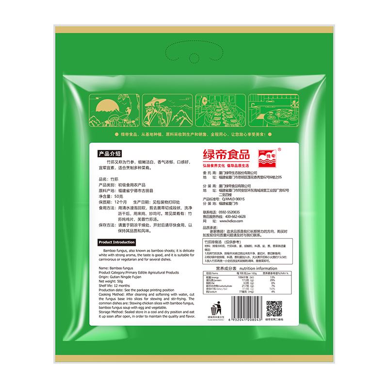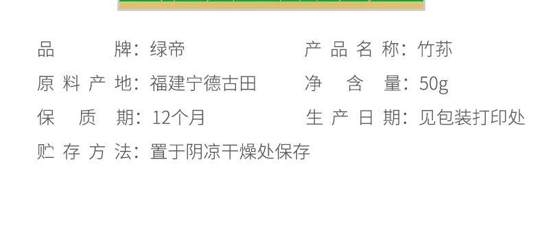 商品名称:绿帝竹荪 重量:50g/袋 产地:福建宁德 保质期:365天