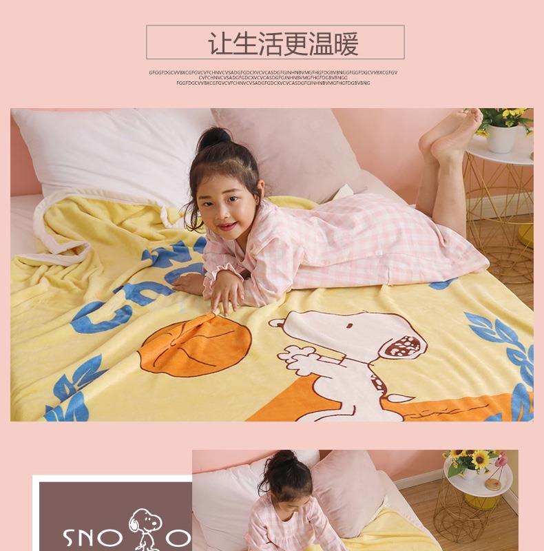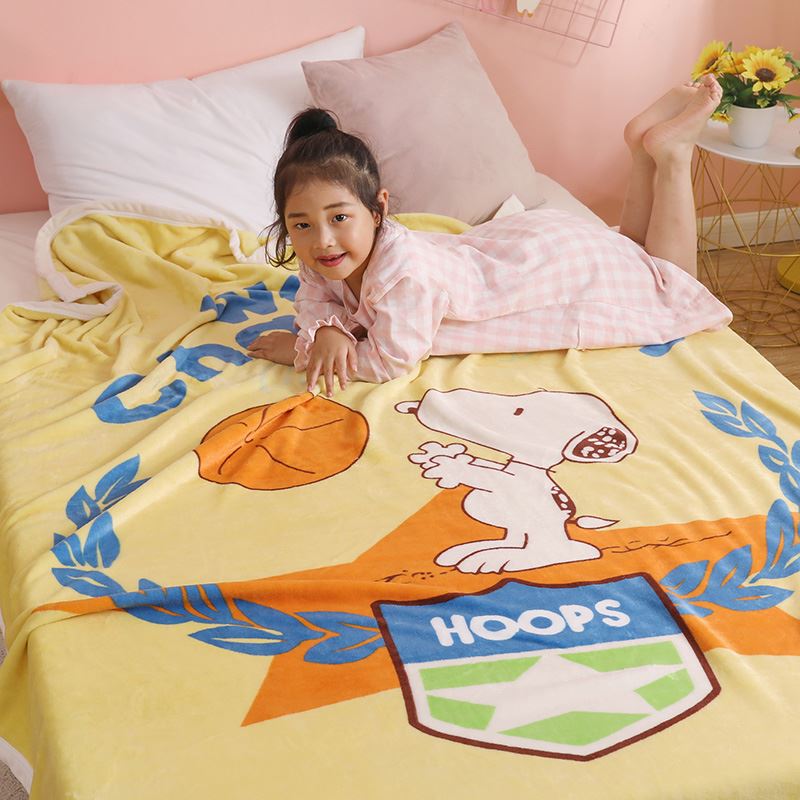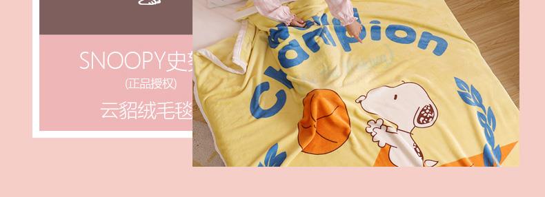 产品品名:史努比·盖毯(篮球小子) 型号:SNB04-10 材质:牛奶绒(全聚酯纤维)