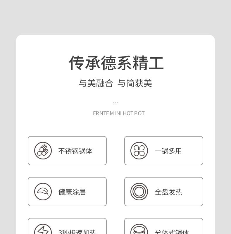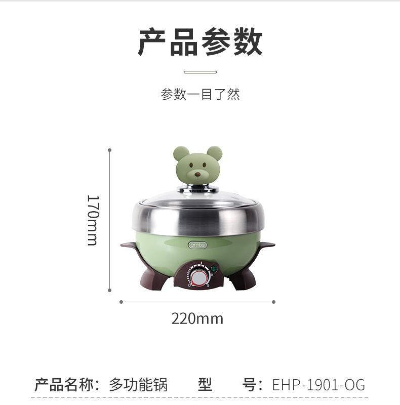 商品名称:ERNTE昂特 电火锅 系列:青石系列 规格/型号:EHP-1901-OG 箱规:8