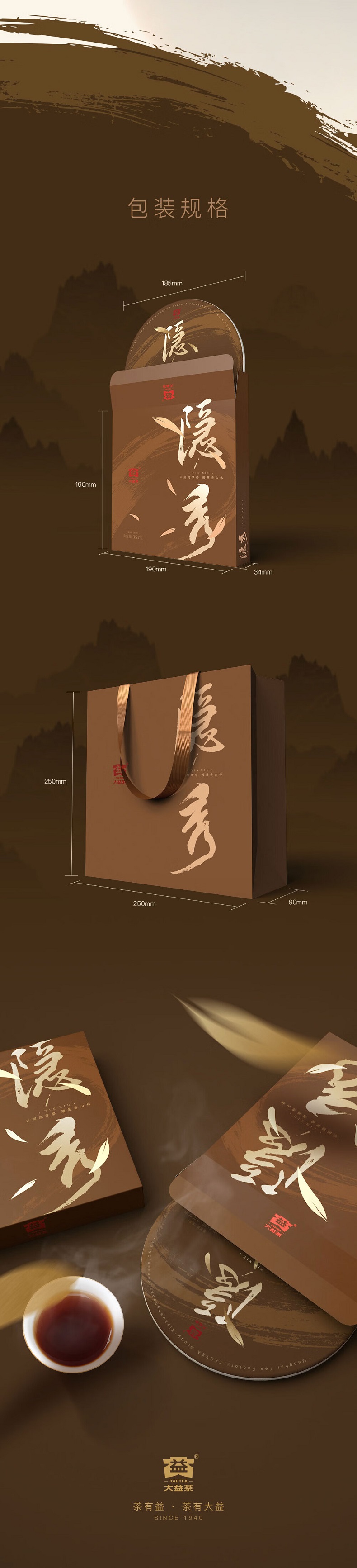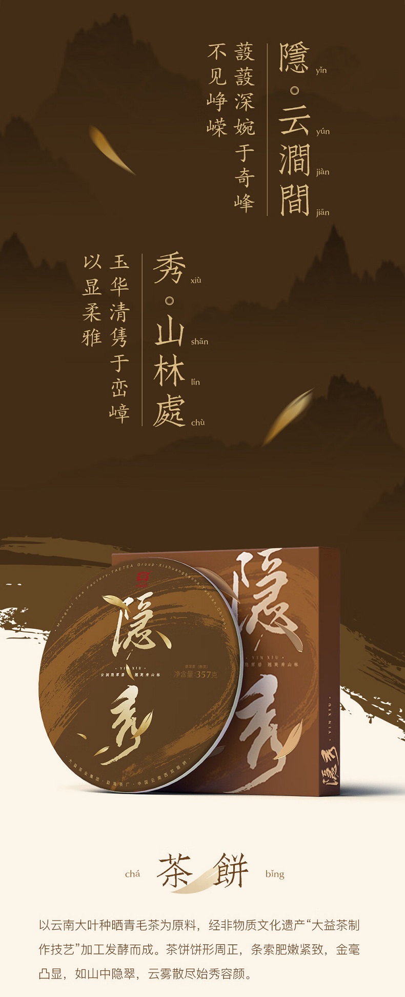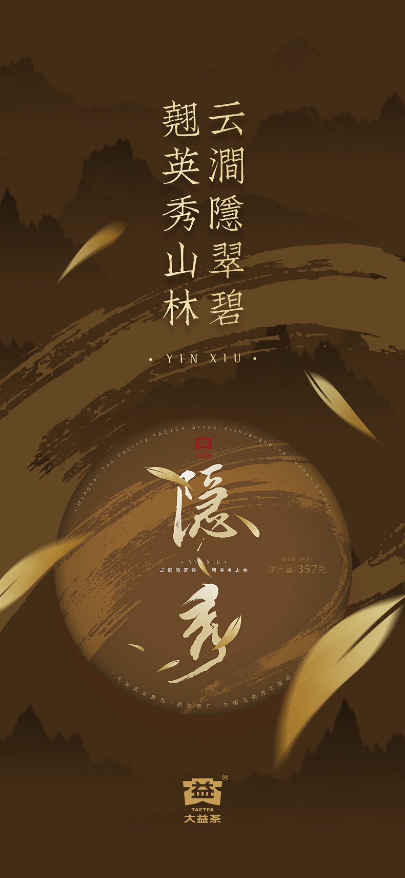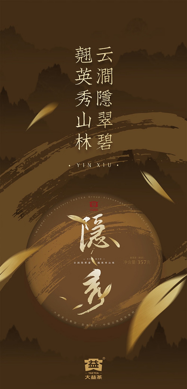 大益茶隐秀(熟茶)普洱熟茶饼送礼茶叶礼盒357g