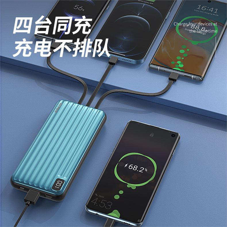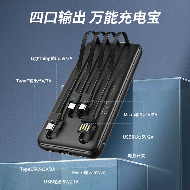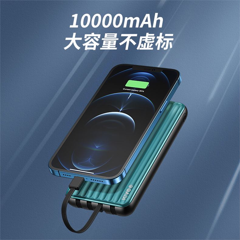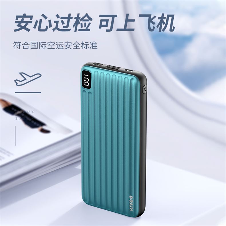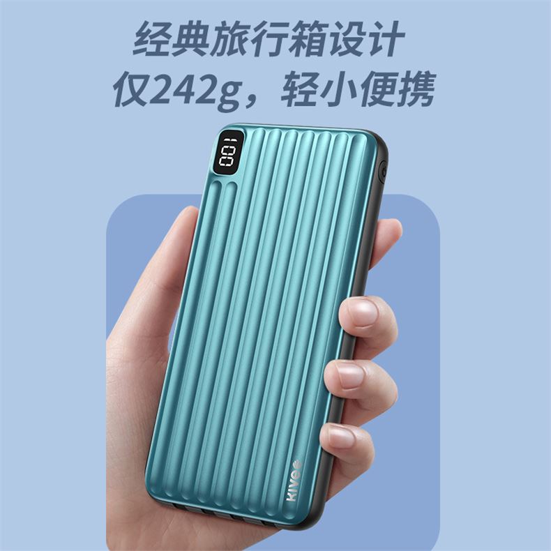 品牌:KIVEE(可逸)名称:移动电源 型号:KV-PT78P 颜色:银色440,蓝色700,绿色490 电池容量:10000mAh 产品参数: 产品净重:242g 产品尺寸:69.5*146.7*19.84MM 包装尺寸:102*190*30mm 电池容量:10000mhA 额定容量6000mah USB-A输入:5V2A,输入:5V2A(micro),输入:5V2A(Type-C)USB-A输出:5V/2.1A,自带线输出:5V2A(苹果/安卓/TYPE-C)