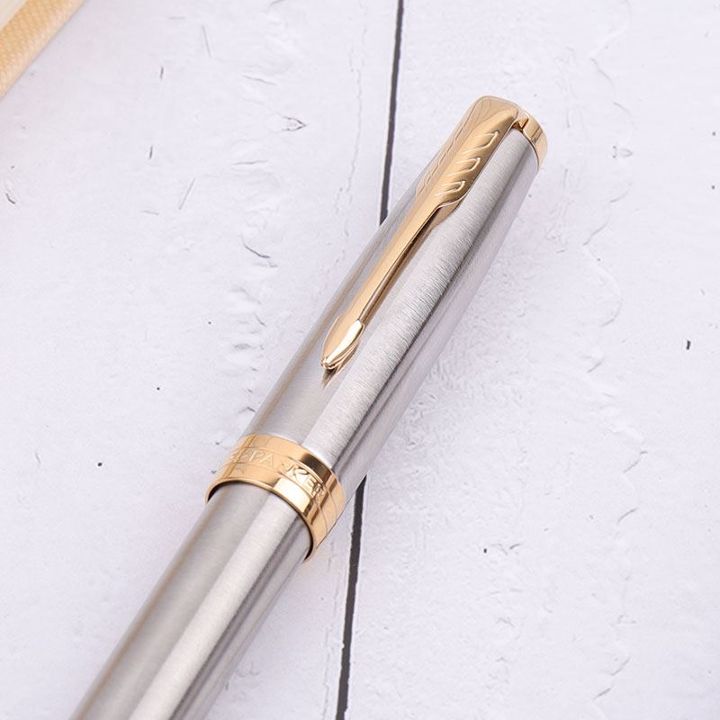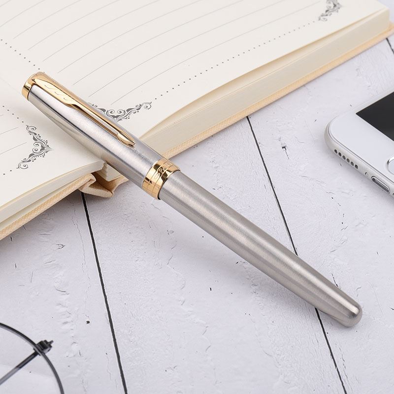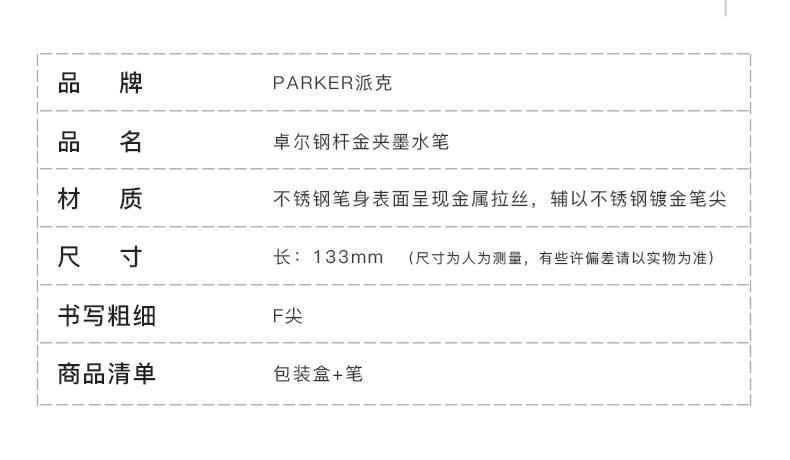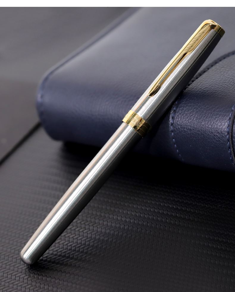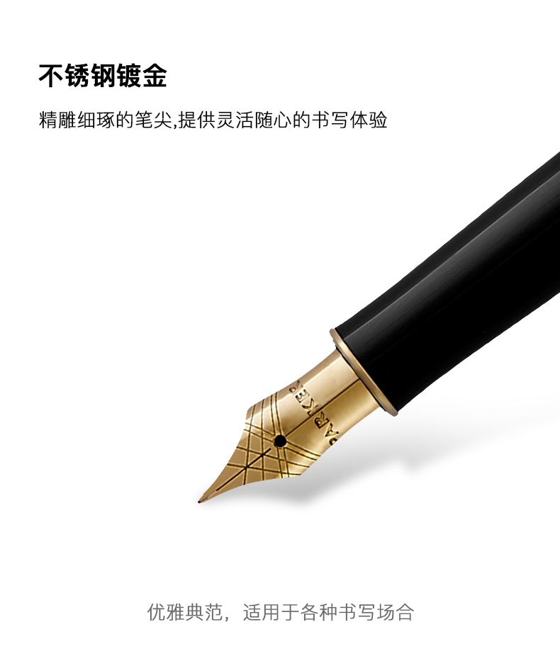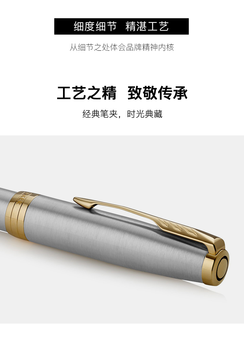 笔尖:不锈钢镀金 笔身:拉丝不锈钢 笔饰:镀金 笔帽:拉丝不锈钢 配置:笔*1、包装*1、手提袋*1