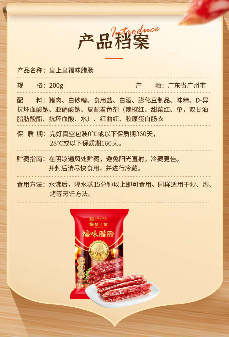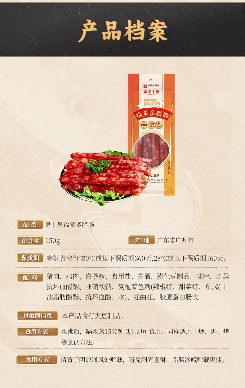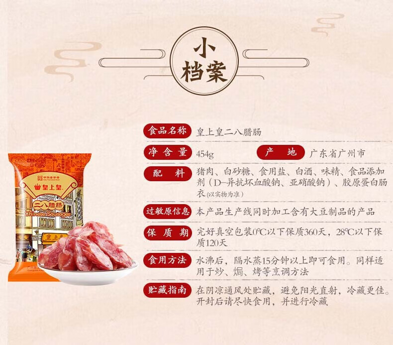 皇上皇腊广东特产肉类熟食腊味250g香荔腊肠【五五肥瘦