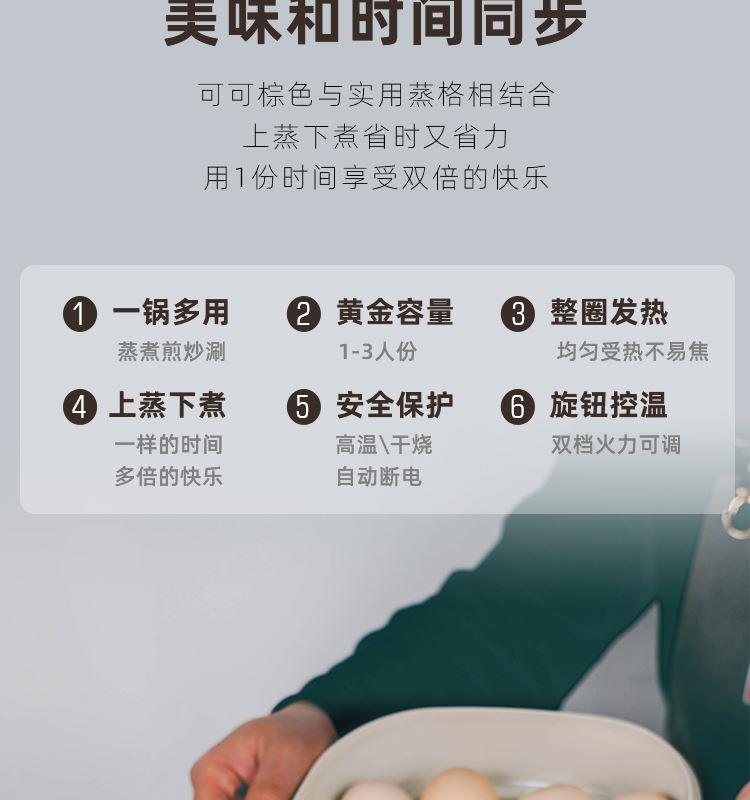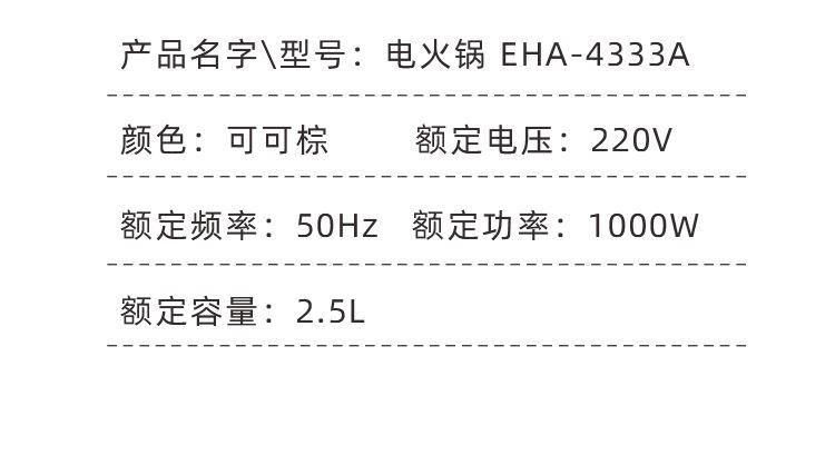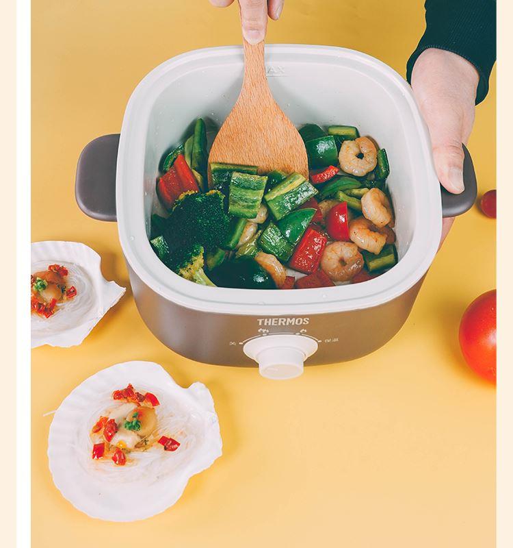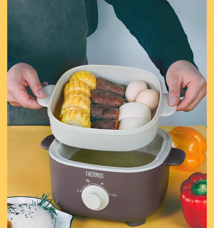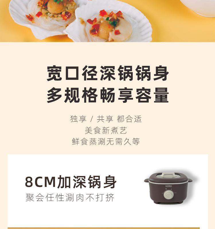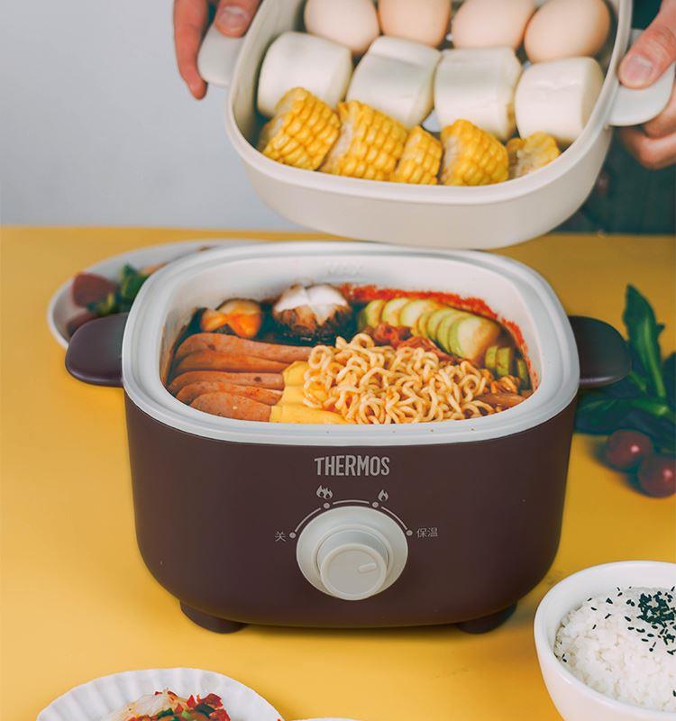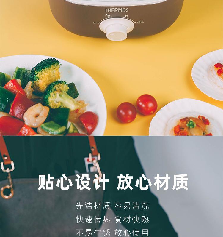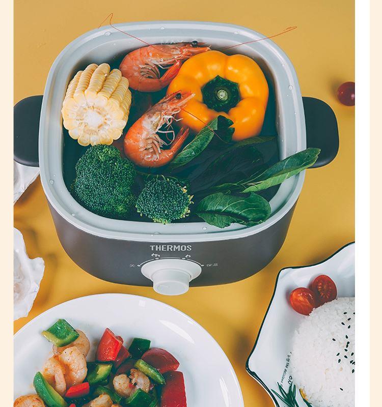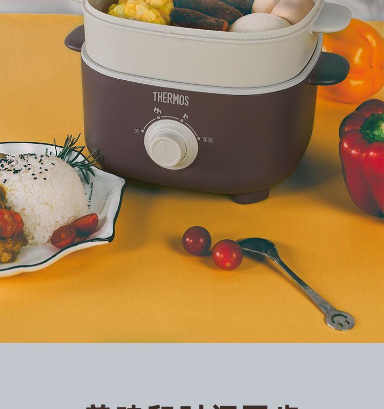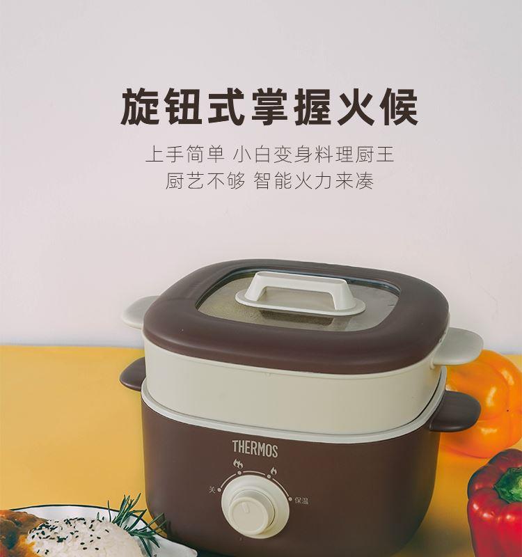 品牌:膳魔师THERMOSR 型号: EHA-4333A 额定功率:1000 W 额定电压:220V ~ 额定频率:50 Hz 额定容量:2.5L 蒸、炒、炸、煎、煮、炖、焖,一锅搞定不费心; 大火力加热,快速升温不等待; 轻烟不粘糊,易清洗; 大功率涮煮翻炒更便捷; 2.5L 黄金容量,满足小家庭需求; 可视锅盖,烹煮过程随心掌握; 简洁机身,配有分离蒸笼,美观大方。