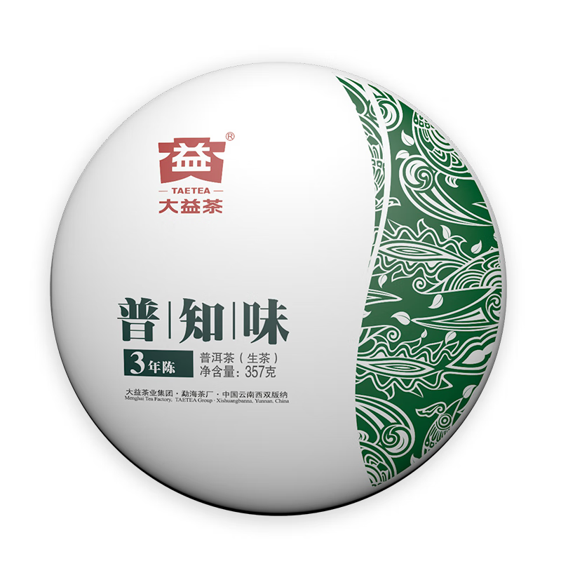 大益普洱茶饼茶3年陈料普知味生茶357g/饼