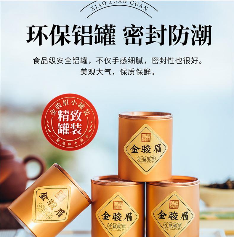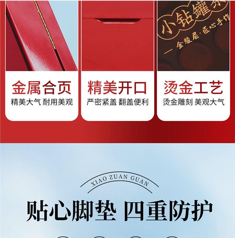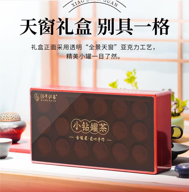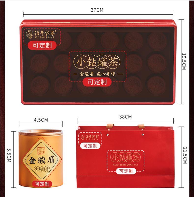 商品名称:小钻罐金骏眉XZJ001 规格:300克(17克*18罐) 尺寸:37*9*19.5cm 小钻罐金骏眉礼盒装净含量:300克(17克*18罐),小罐装,红茶礼,品质红茶,特级金骏眉礼盒装,档次与美感兼具,一罐好茶,一贯用心,自饮讲究,送礼体面,天窗礼盒,别具一格