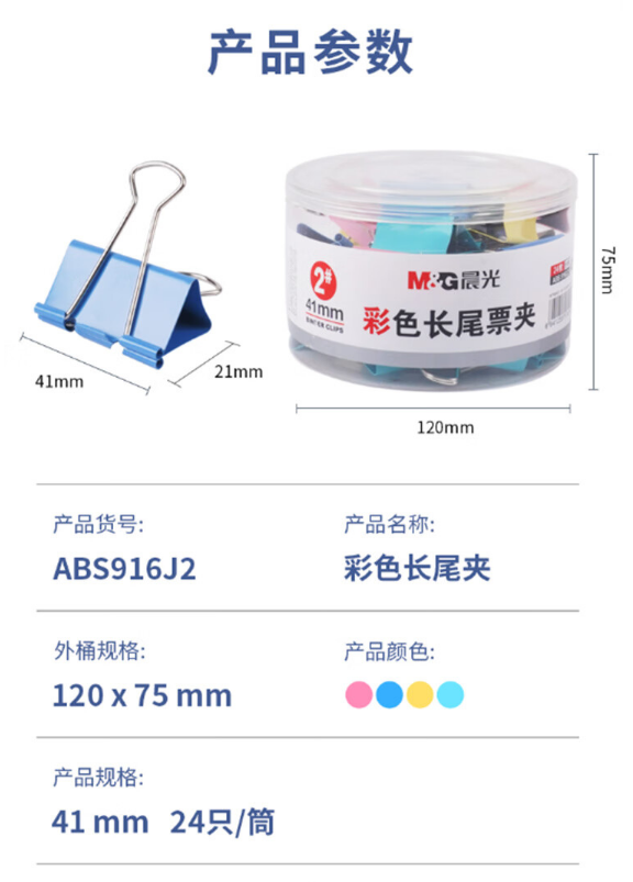 晨光长尾夹Eplus41mm(筒装)彩色ABS92739