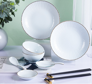 产品材质:餐具:高温瓷;筷子:PET+玻璃纤维 产品参数:盘子×2 碗×2 调羹×2 碟子×2 筷子×2双 包装尺寸:邮购盒 27.5×28×17.5cm 装箱明细:1pcs/箱