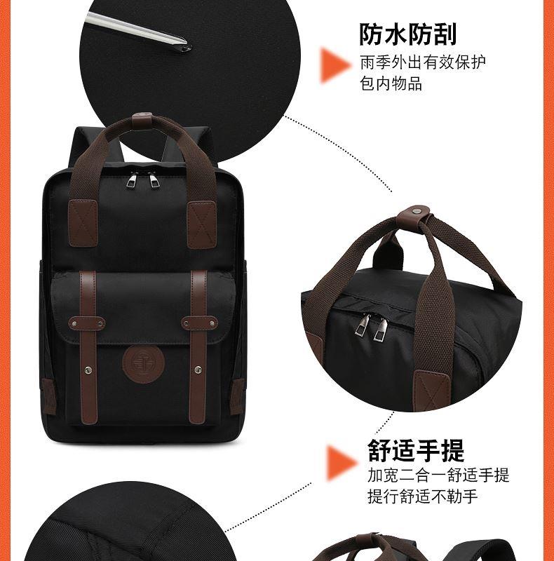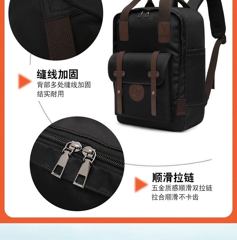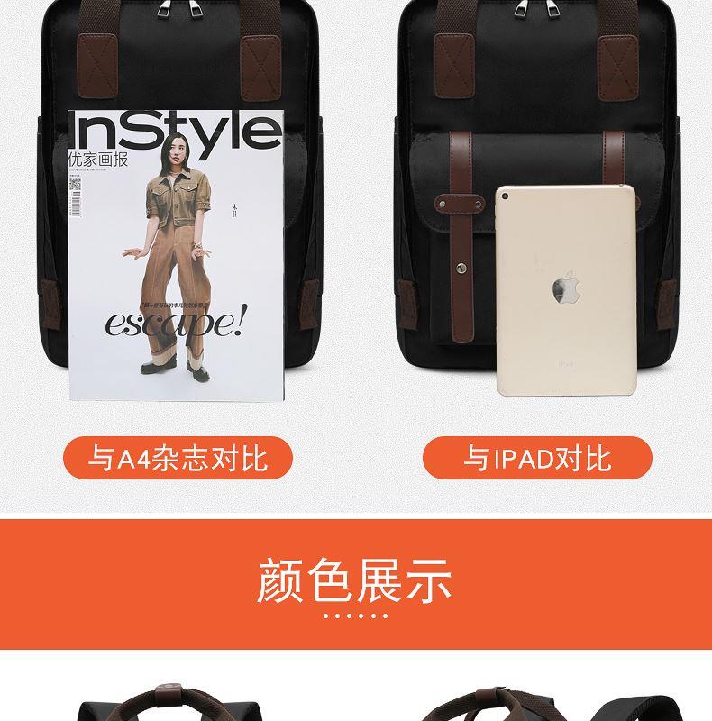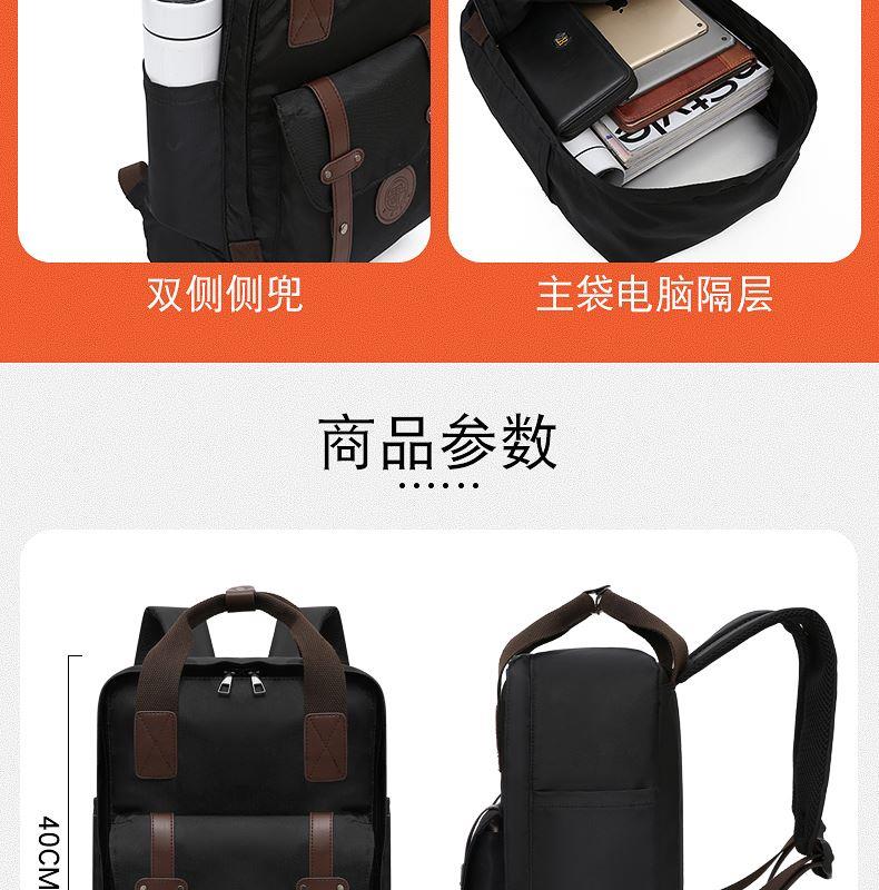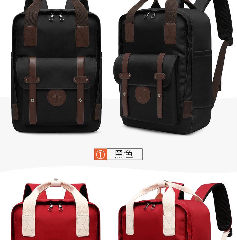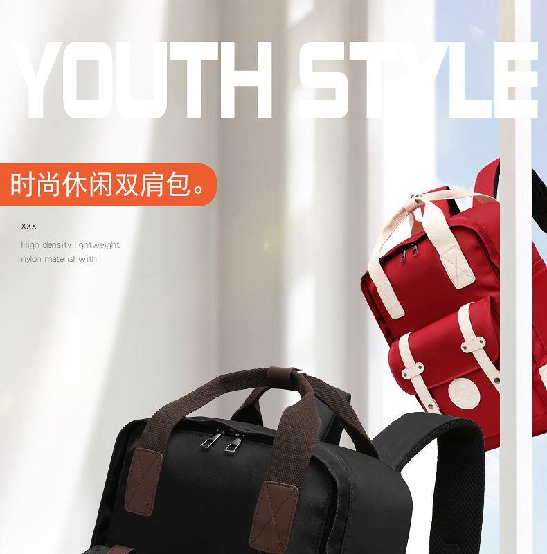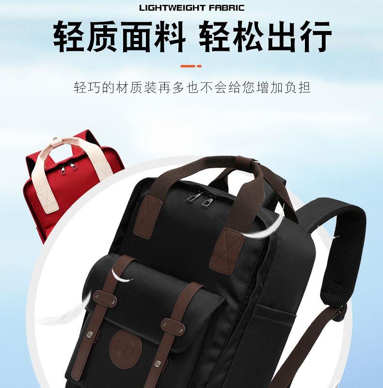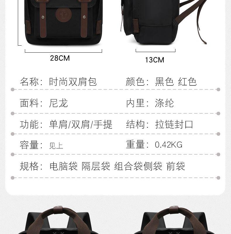 产品参数 型号:休闲背包3226 颜色:黑色、红色 尺寸:40*28*13cm 材质:尼龙 重量:0.42kg 商品简介: 一款时尚单品双肩背包,特采用撞色皮革拼接,简约且时尚,材质轻盈,受重力强,背负无压力。