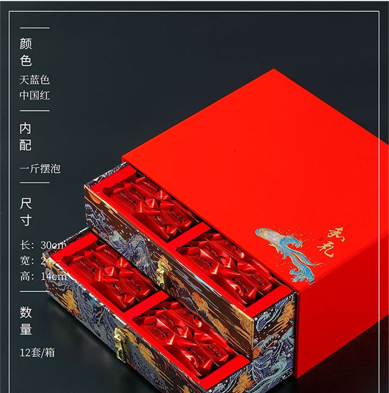 产品品名:和礼双层大红袍 产品信息:大红袍春季鲜芽叶500g 规格:30*24.5*14cm 产地:福建武夷山