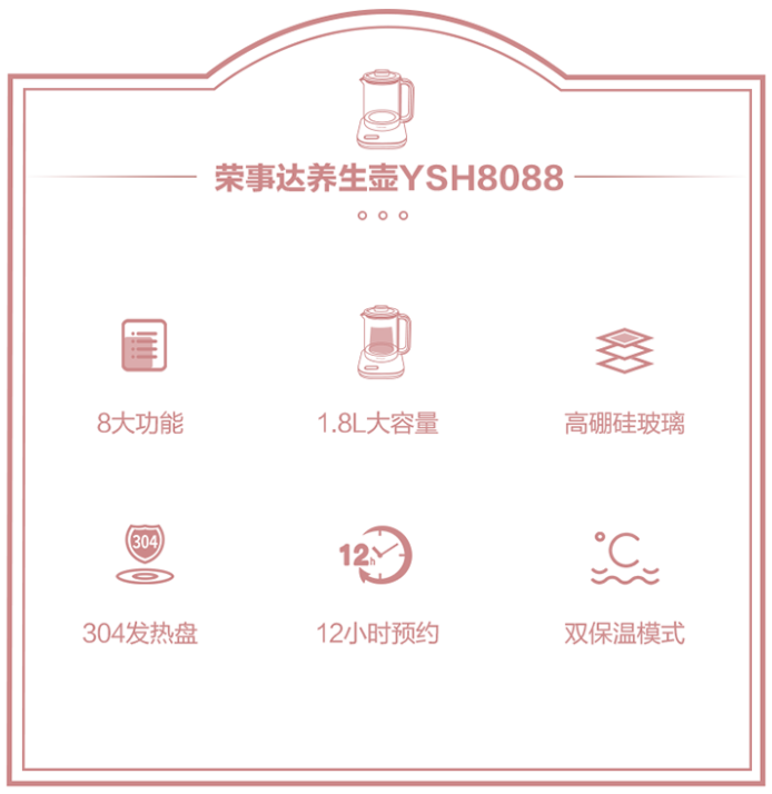 产品型号:YSH8088 额定电压:220V~ 额定功率:800W 产品容量:1.8L 产品材质:高硼硅玻璃、304#不锈钢、PP 商品条码:6941220234933