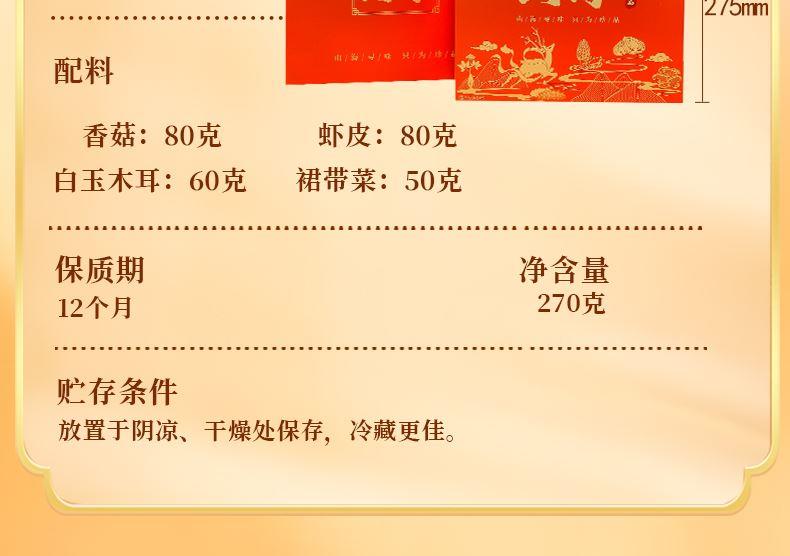 香菇80g,白玉木耳60g,虾皮80g,裙带菜50g